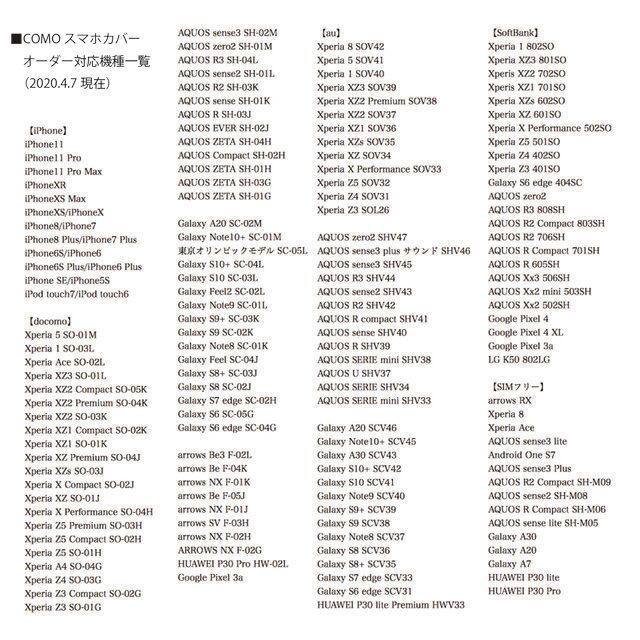(最新作等はこちらに反映できてない場合もございます。ご希望の機種がない場合はお気軽にお問い合わせください。)