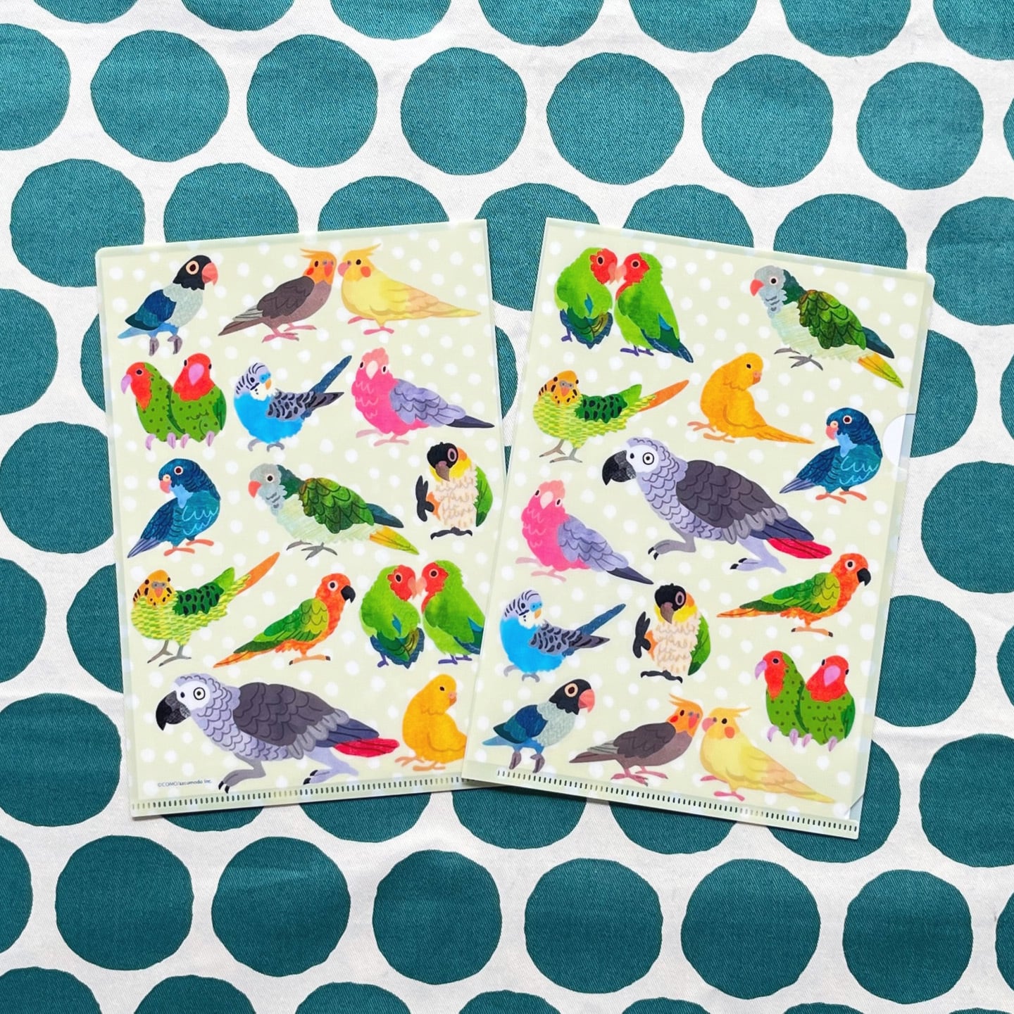 ということで、以前から定番で人気のあるデザイン「インコいろいろ」「dogs」のクリアファイルを作りました。