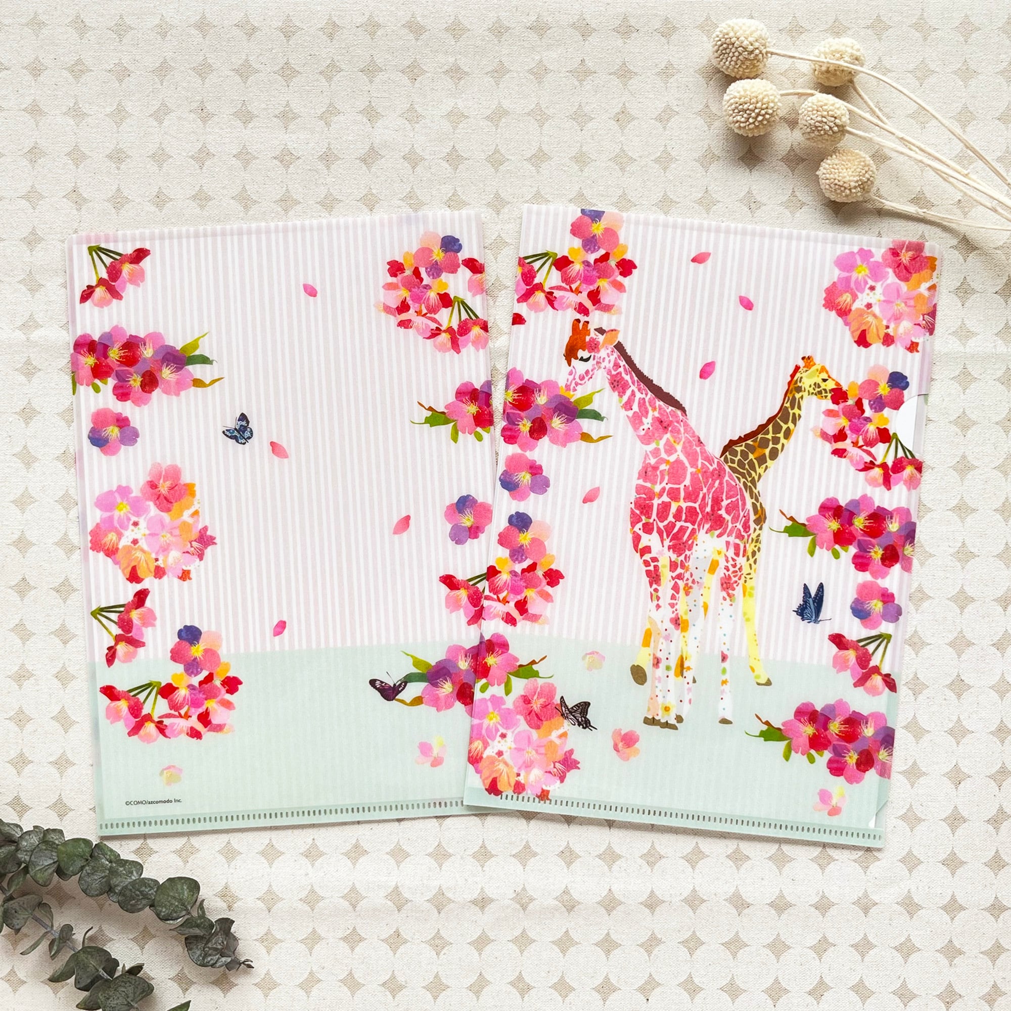 春にぴったりな定番デザイン「サクラキリン」と「フルーツレッサー」のクリアファイルを作りました。